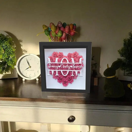 Mom Heart Shaped Monogram Flower Shadow Box